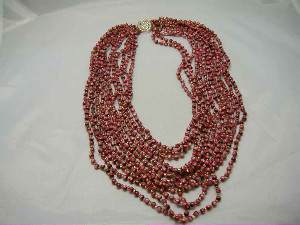1950s Amazing 12 Row Red Pink Gold Lucite Bead Necklace