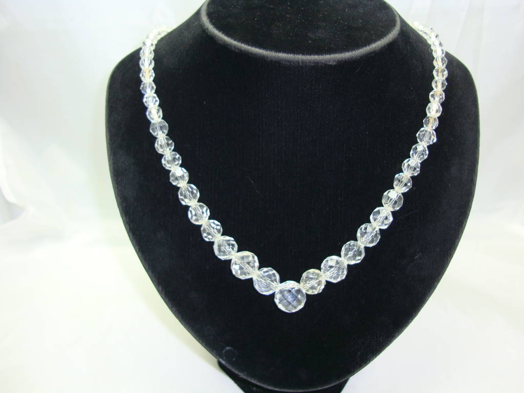 1950s Beautiful Faceted Crystal Glass Bead Necklace WOW