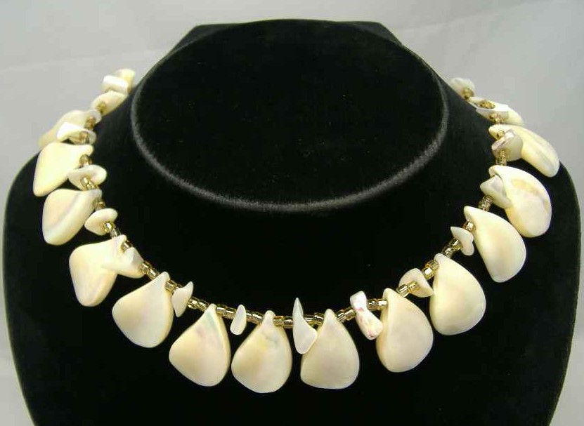 1950s Mother of Pearl Teardrop & Gold Bead Necklace WOW