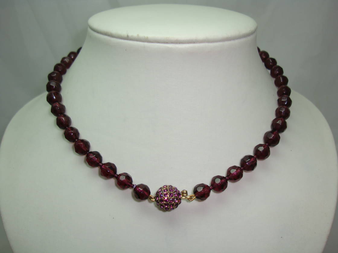 1950s Purple Glass Bead Necklace Fab Diamante Clasp WOW