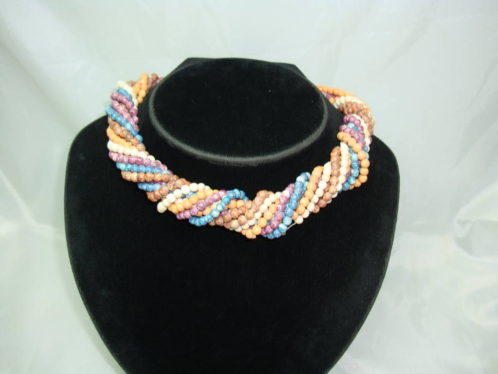 1970s 5 Row Multicoloured Glass Bead Twist Necklace WOW