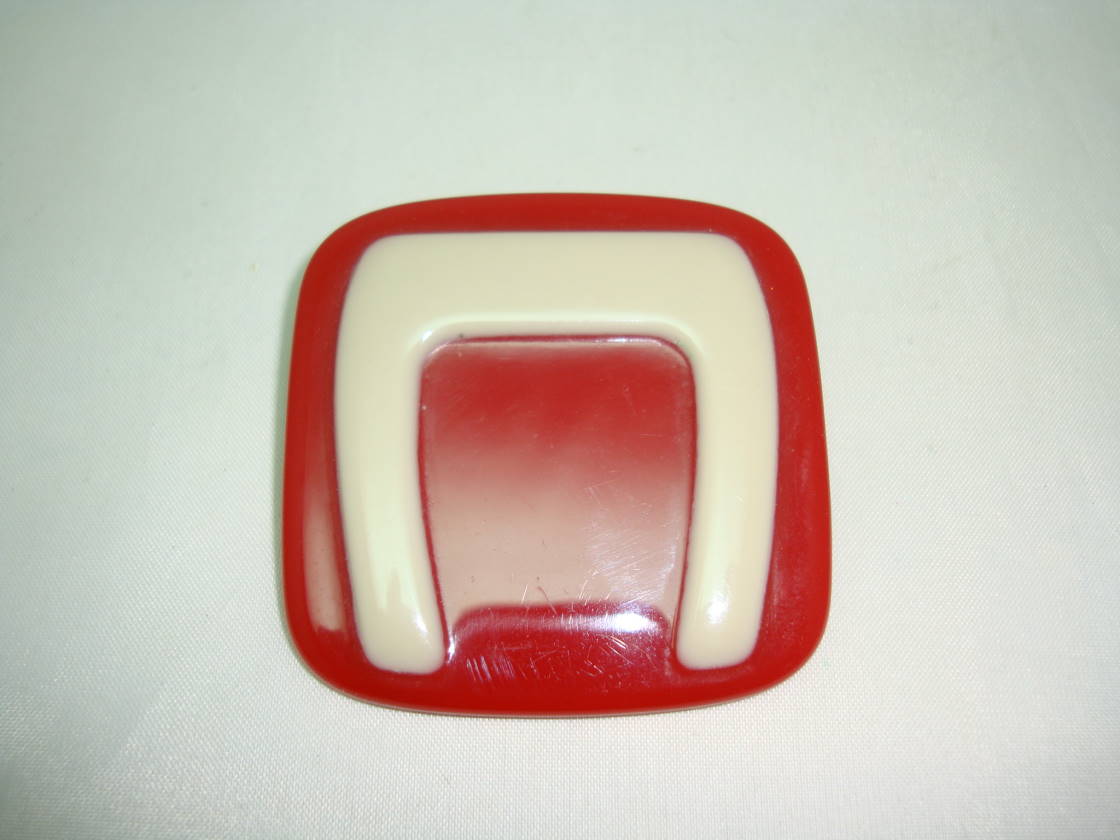 We are pleased to offer this very unusual vintage 1970s contemporary design red and cream lucite/plastic square shaped brooch which is just fab.  Excellent vintage condition, looks super on, very unique and stylish