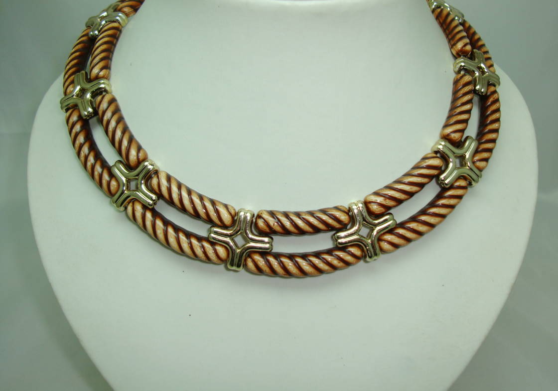 1970s Very Attractive Wide Brown and Gold Lucite Collar Necklace MINT!