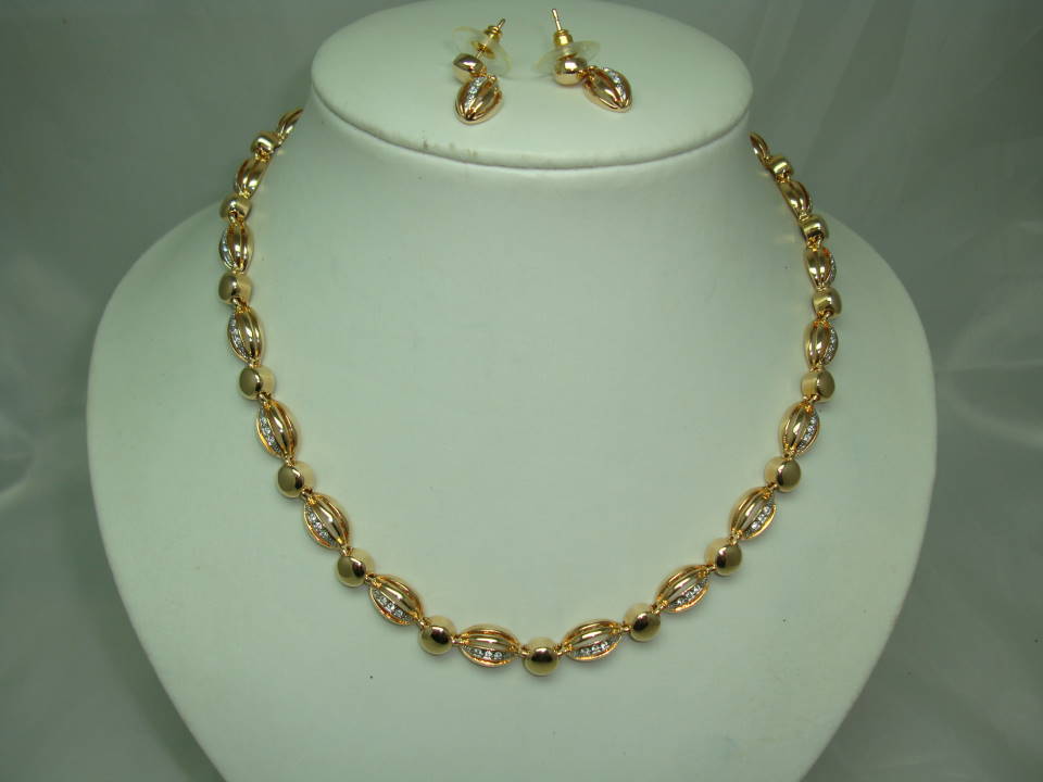 1980s Quality Crystal Diamante Gold Necklace & Earrings