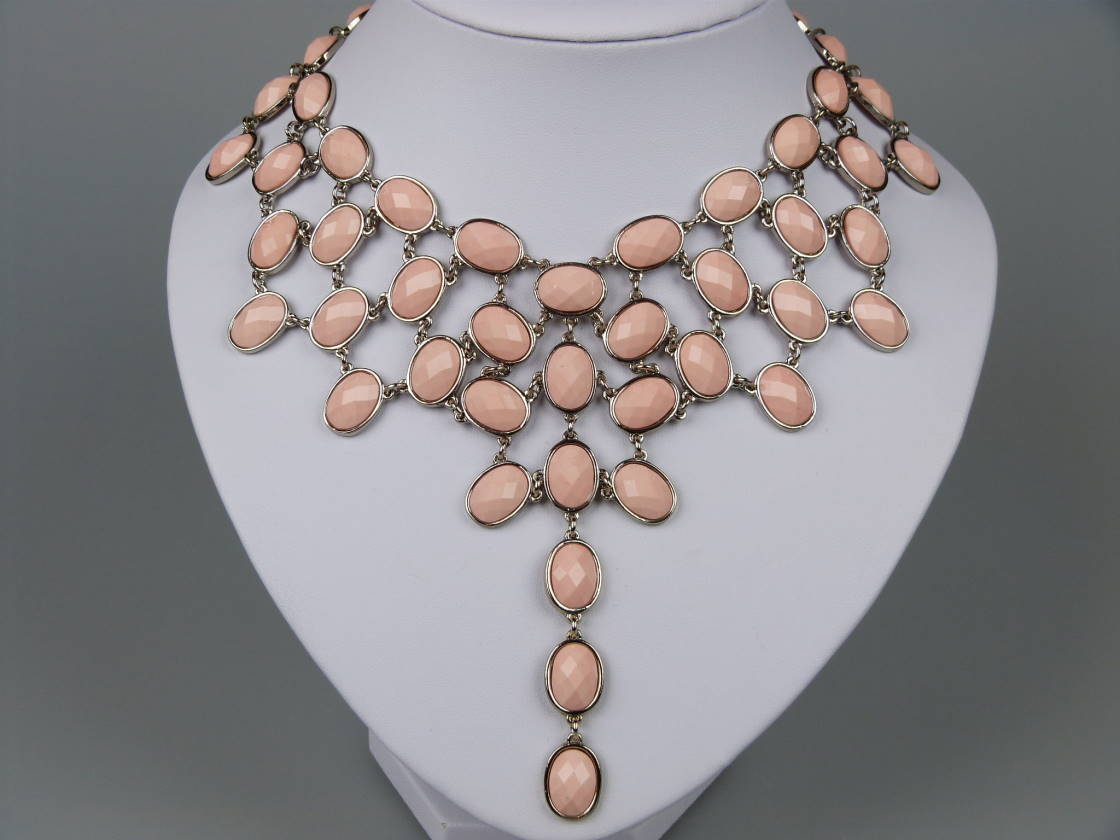 Amazing 1960s Style Festoon Bib Drop Pink Lucite Silver Link Necklace