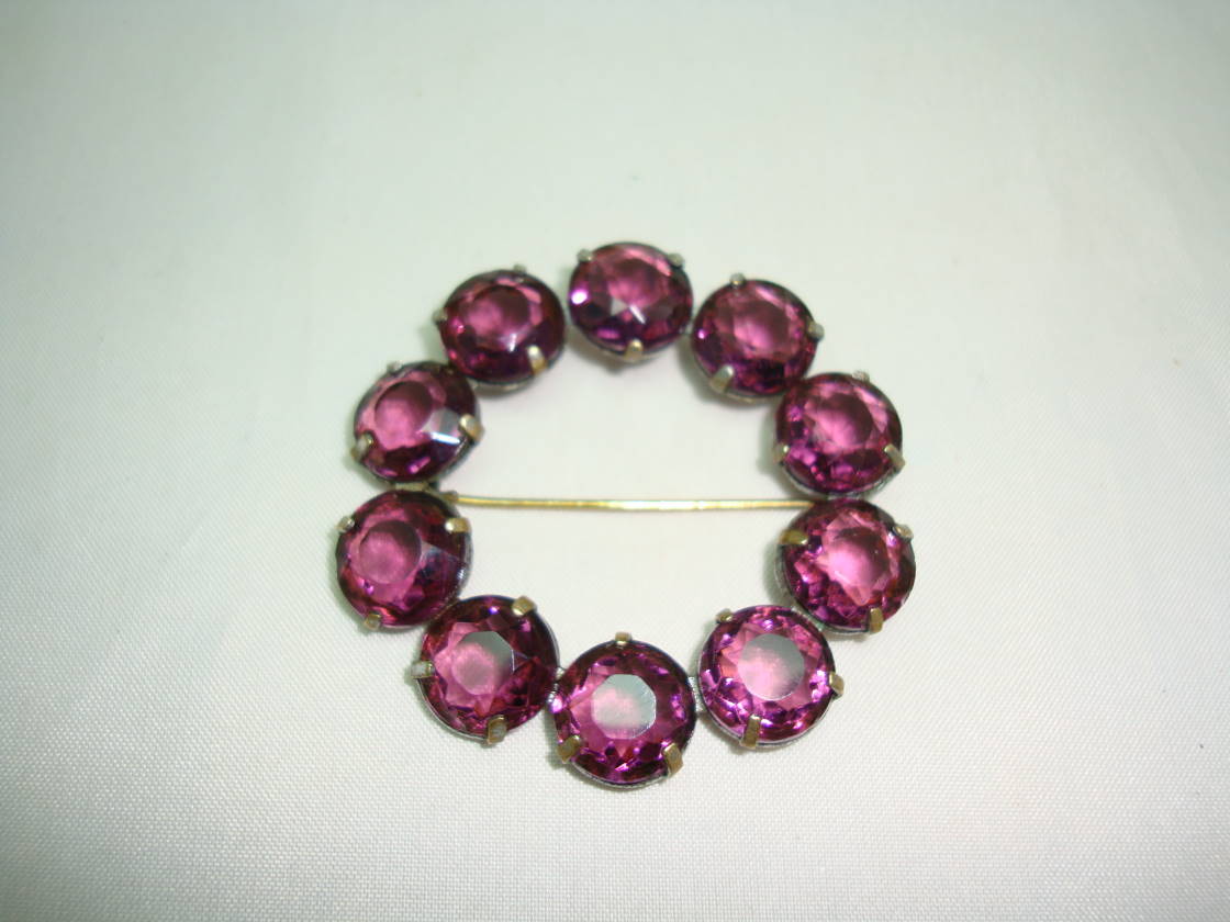 We are pleased to offer this beautiful antique Victorian amethyst/purple coloured claw set paste stone garland brooch set in a silvertone frame.  As you can see from the photos, the brooch is in very good vintage condition, looks really pretty on, loads of sparkle and shine from the paste stones.