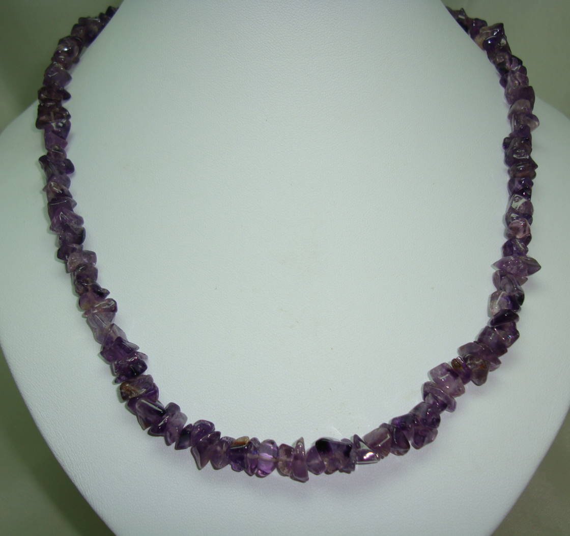 I am pleased to offer this very attractive real amethyst smooth chip polished bead necklace which is just fab.  Excellent condition, as necklace is a new, modern piece, fastens with bolt ring fastener, looks really pretty on, lovely smooth irregular shaped beads, very well made.