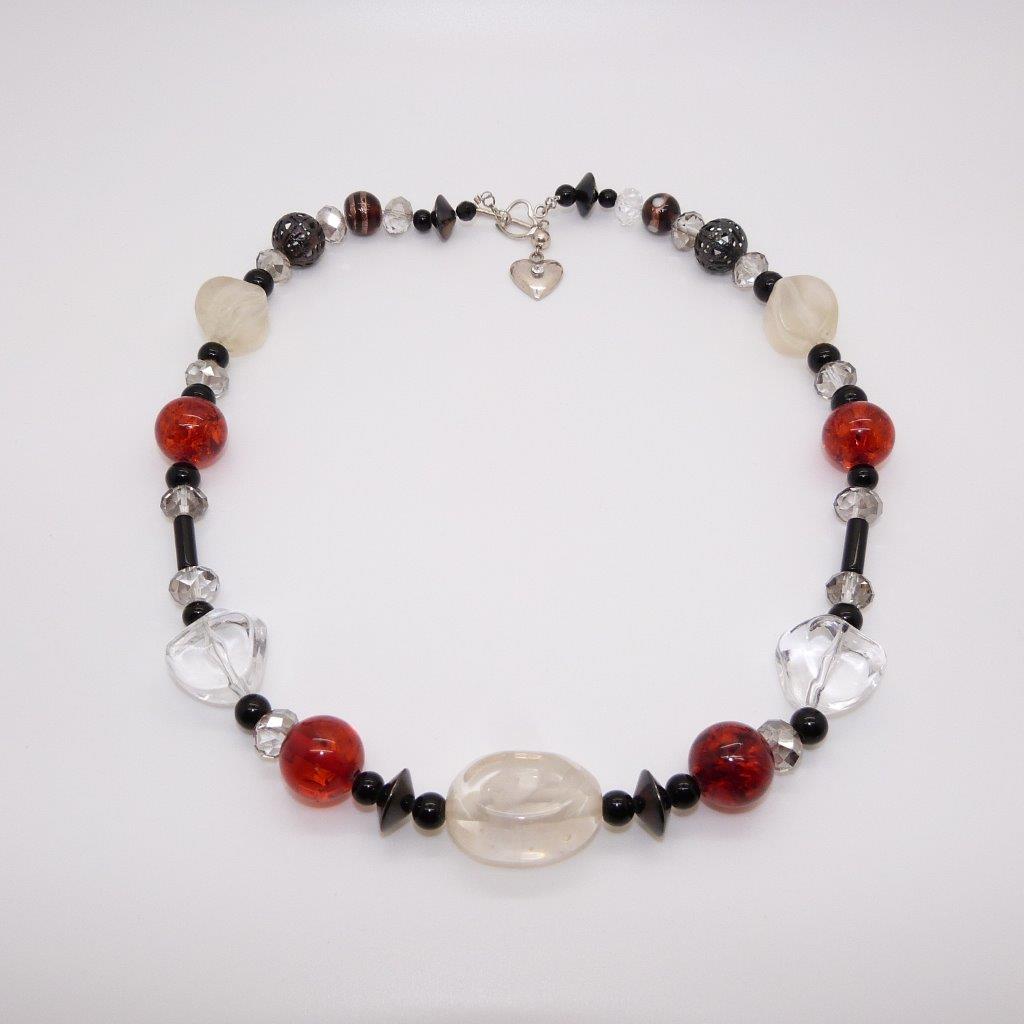 Beautiful Crystal Hear Red and Black Glass Necklace