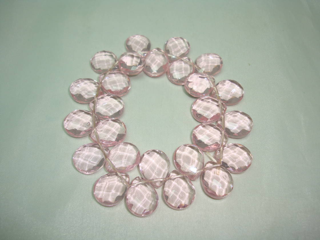 Beautiful Pink Faceted Crystal Glass Briolette Bead Stretch Bracelet