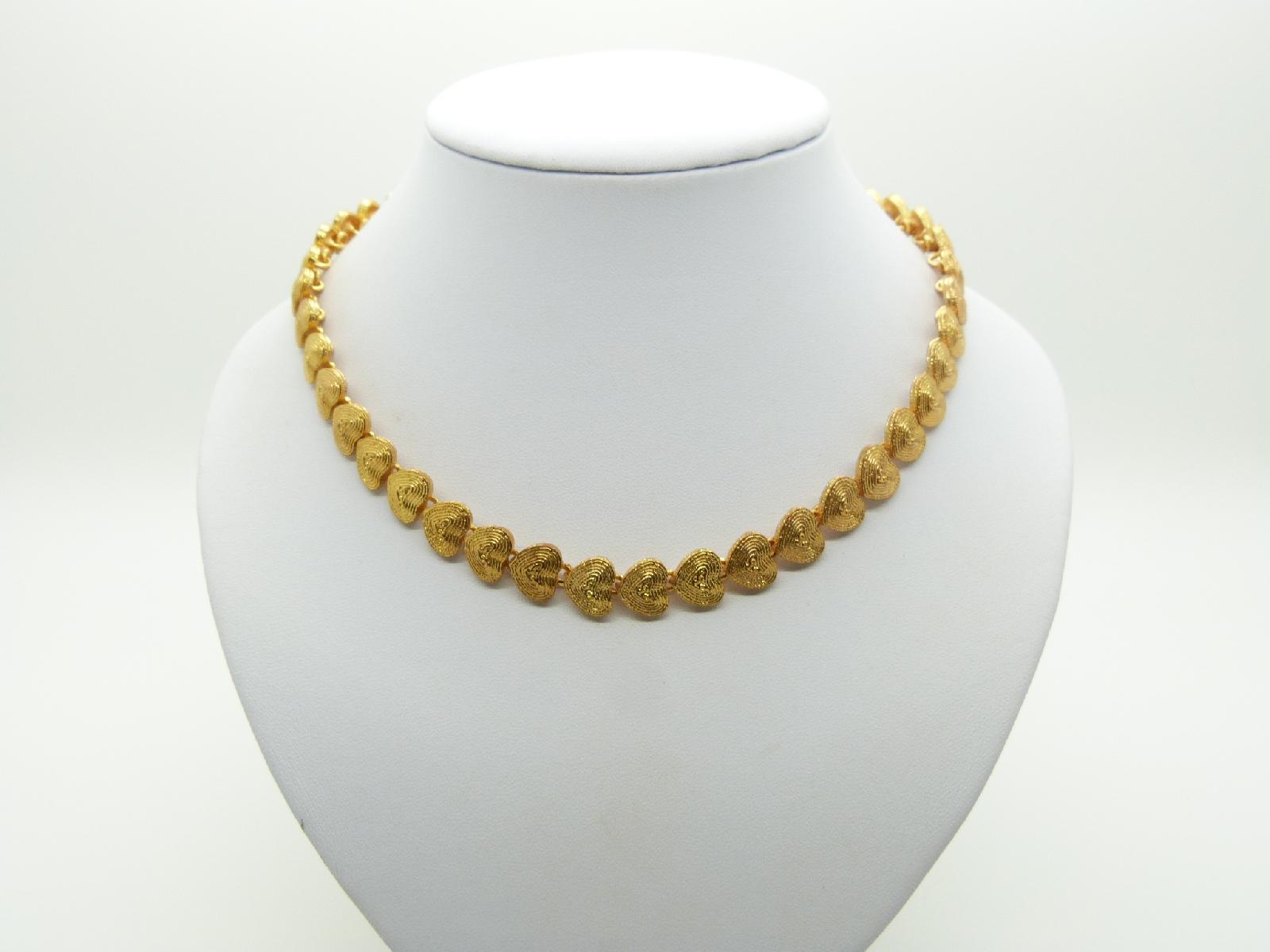 Designer Signed YR Gold Plated Heart Shaped Textured Link Necklace