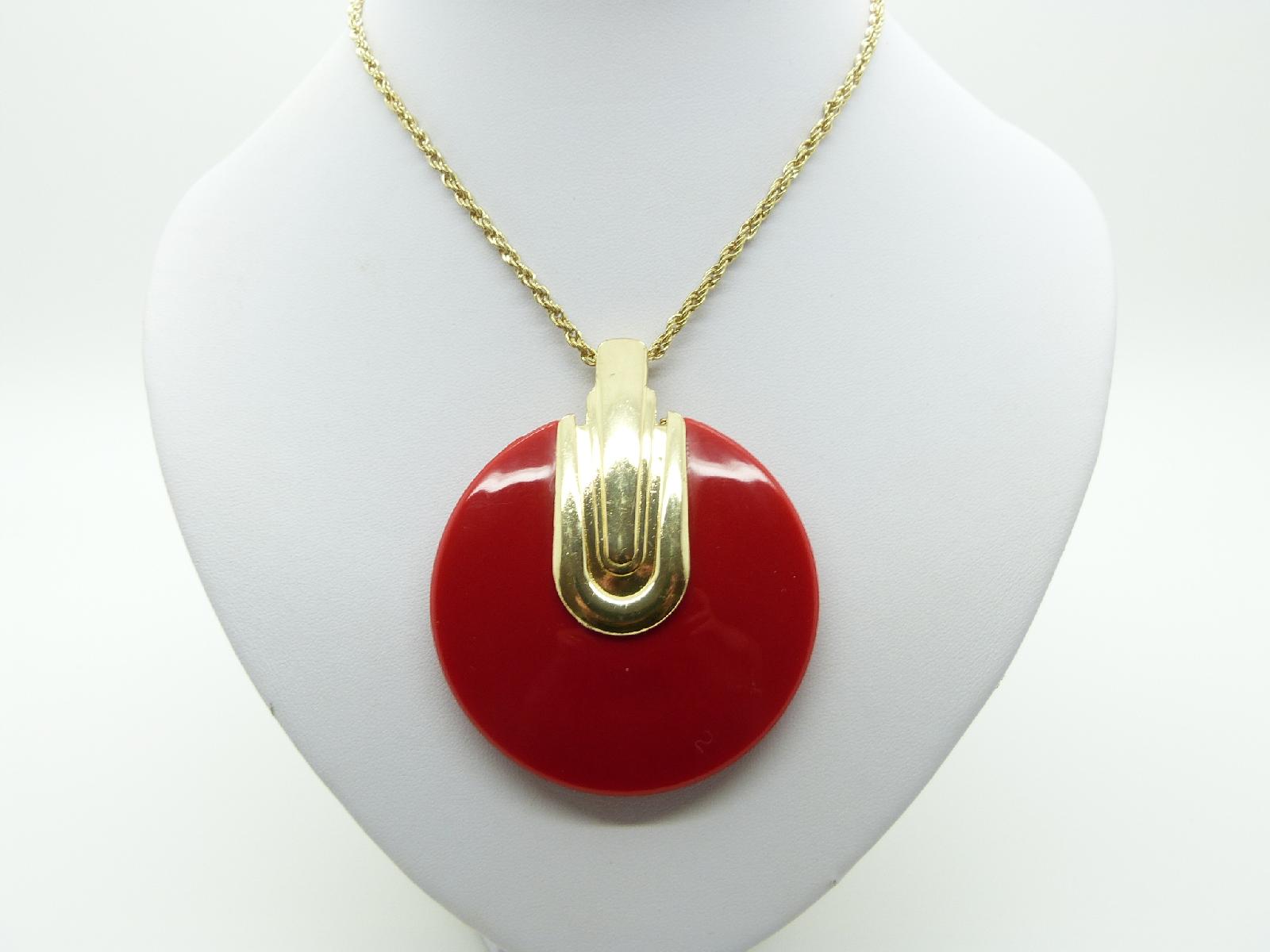 Fab Large Red and Gold 60s Style Round Pendant and Long Gold Chain