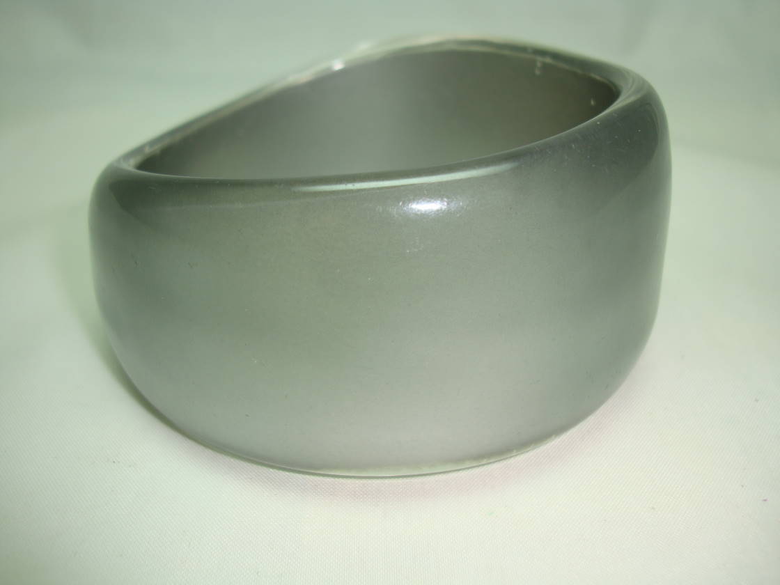 Fabulous chunky grey lucite acrylic moonglow irregular shaped wide bangle.  Excellent condition as bangle is a modern, new piece.  Looks stunning on, a real statement piece.
