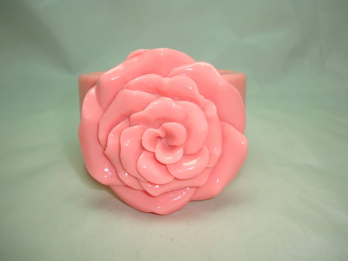 Fabulous Wide Chunky Pink Flower Acrylic Bangle Statement Piece!
