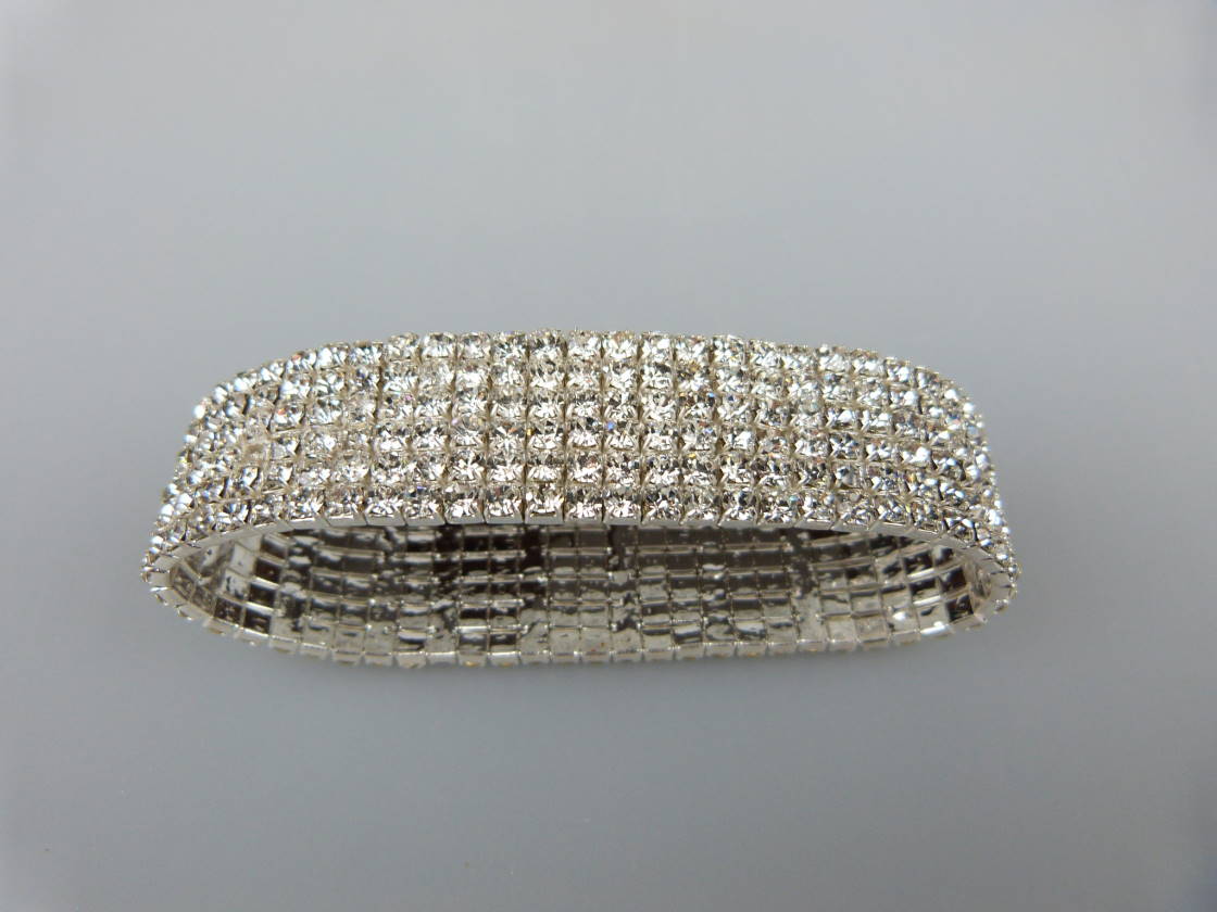 We are pleased to offer this glamorous sparking vintage 50s STYLE wide diamante stretch bracelet which is just fab.  Loads of sparkle and shine, looks really stunning on, excellent condition as bracelet is a modern item.  Will fit most wrist sizes as bracelet has stretch to it.