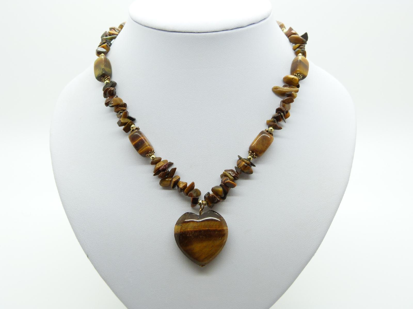Lovely Real Tigers Eye Bead Necklace with Tigers Eye Heart Pendant 50cms