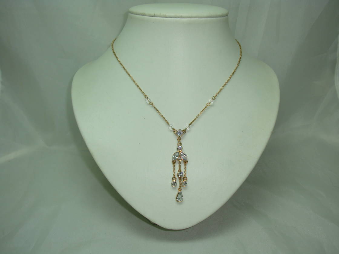 Pretty Crystal and Diamante Edwardian Style Tassel Drop Gold Necklace