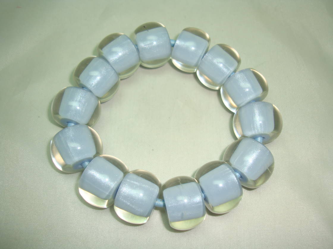 Unusual and Quirky Chunky Blue and Clear Lucite Bead Stretch Bracelet