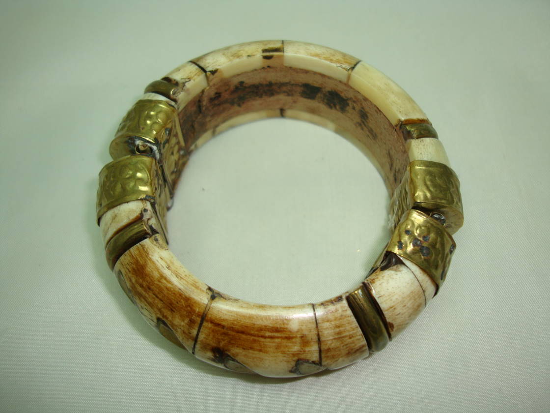Vintage 30s Chunky Wide Bone and Brass Ornate Cuff Bangle Bracelet