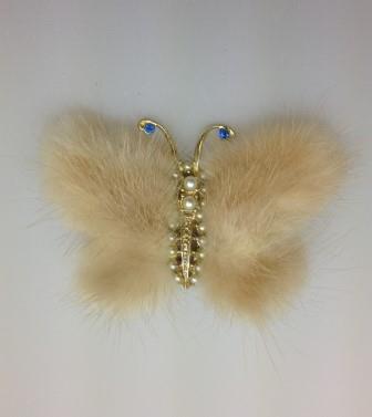 Beautiful vintage 40s real mink butterfly brooch set with glass faux pearls and blue diamantes.  Excellent condition, measure 3.5 inches wide, with secure pin and fastener.