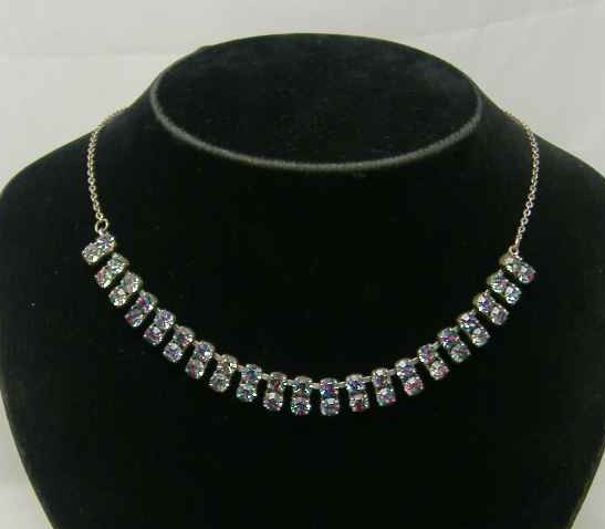 Vintage 50s AB Carnival Double Row Diamante Necklace
