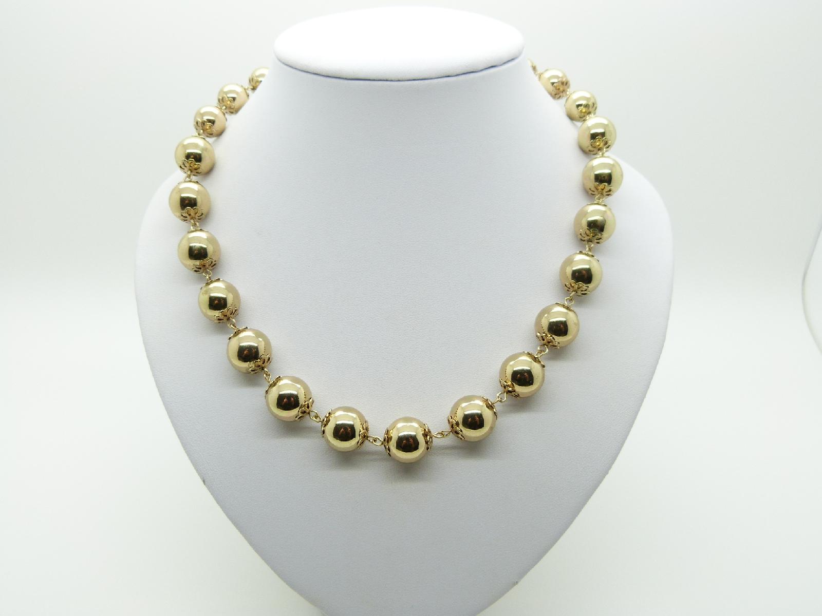 Vintage 50s Attractive Gold Metal Bauble Bead Necklace 51cms
