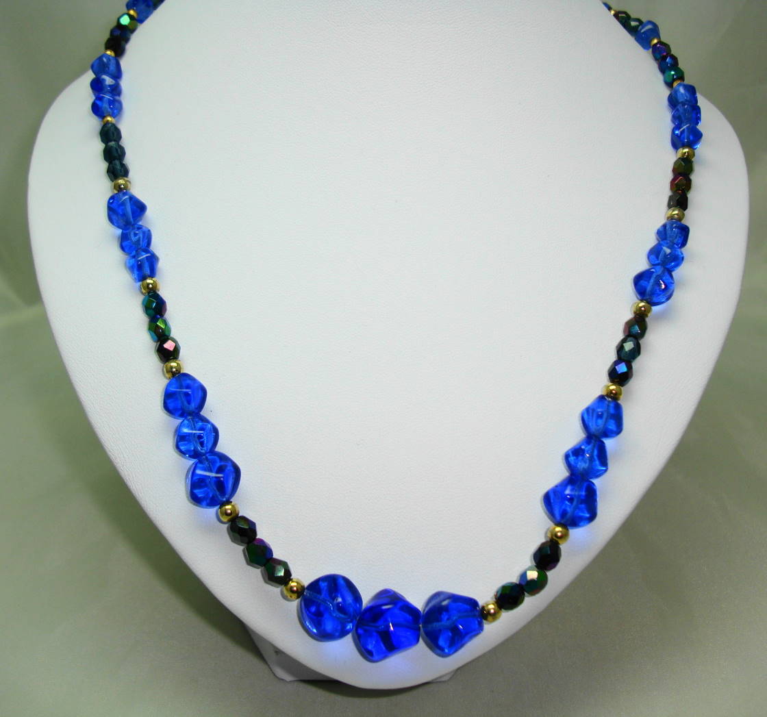 Vintage 50s Blue Glass and AB Peacock Sparkle Glass Bead Necklace