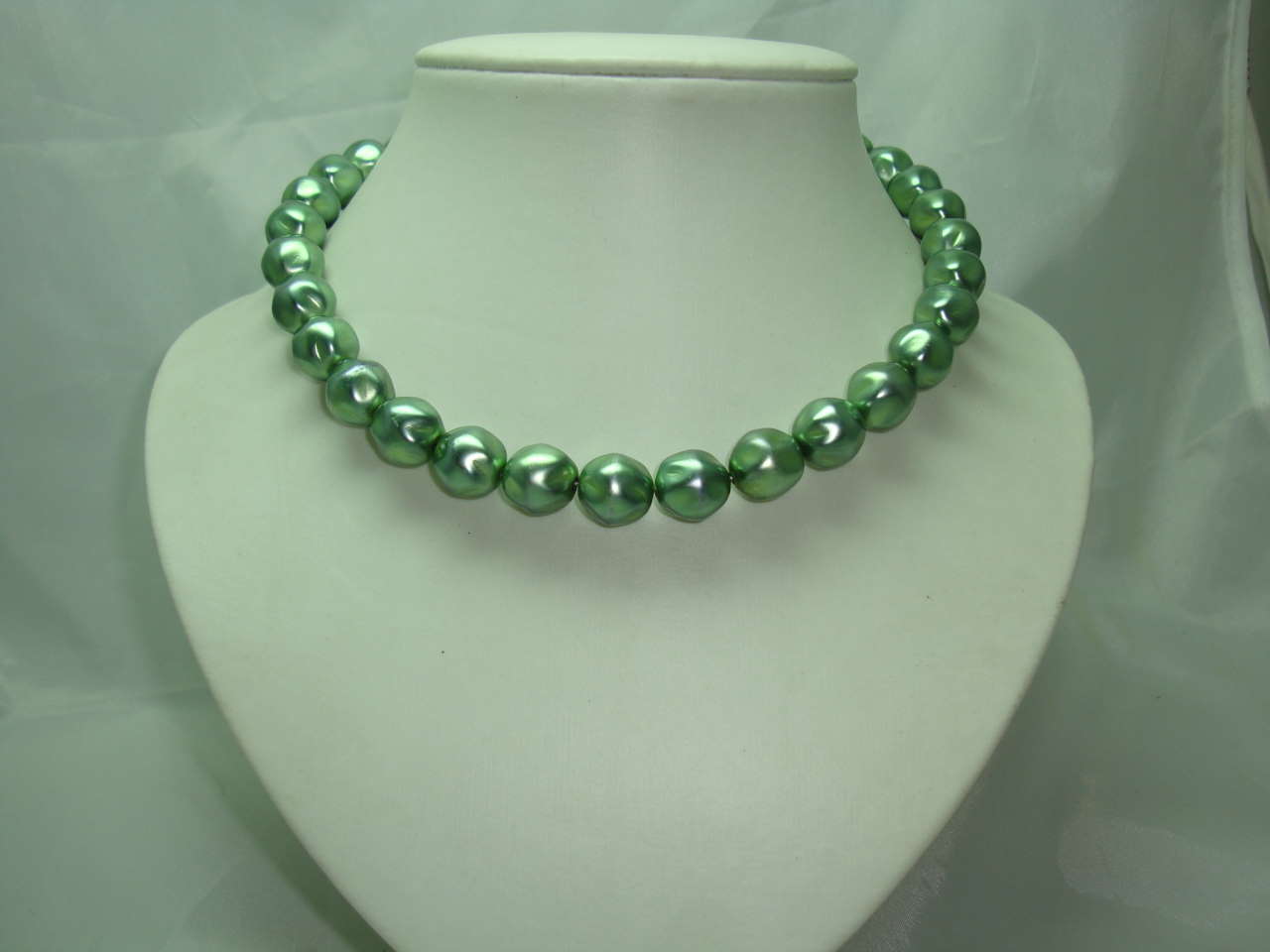 Vintage 50s Chunky Green Glass Faux Pearl Bead Necklace