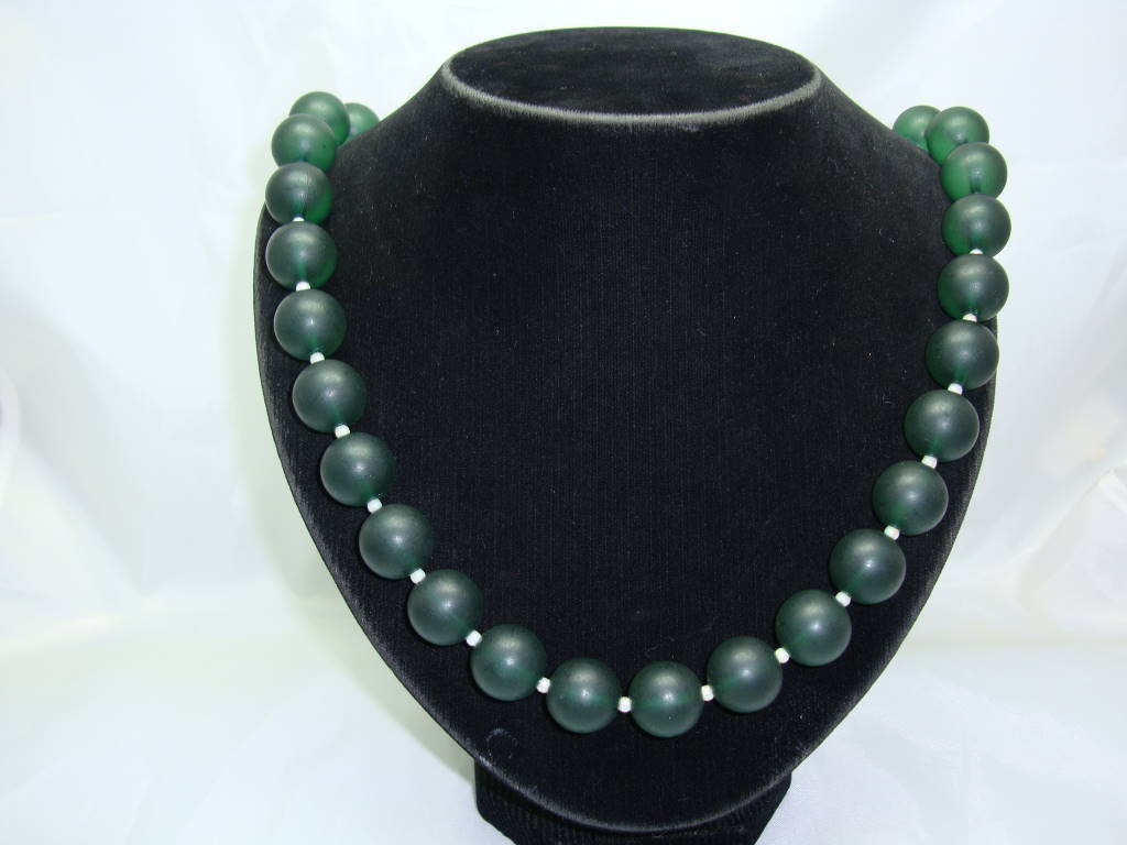 Vintage 50s Chunky Green Lucite Moonglow Bead Necklace