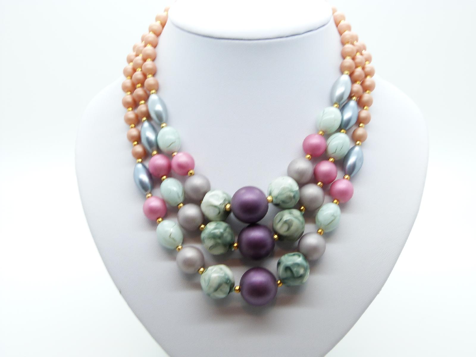 Vintage 50s Chunky Three Row Multicoloured Lucite Bead Necklace