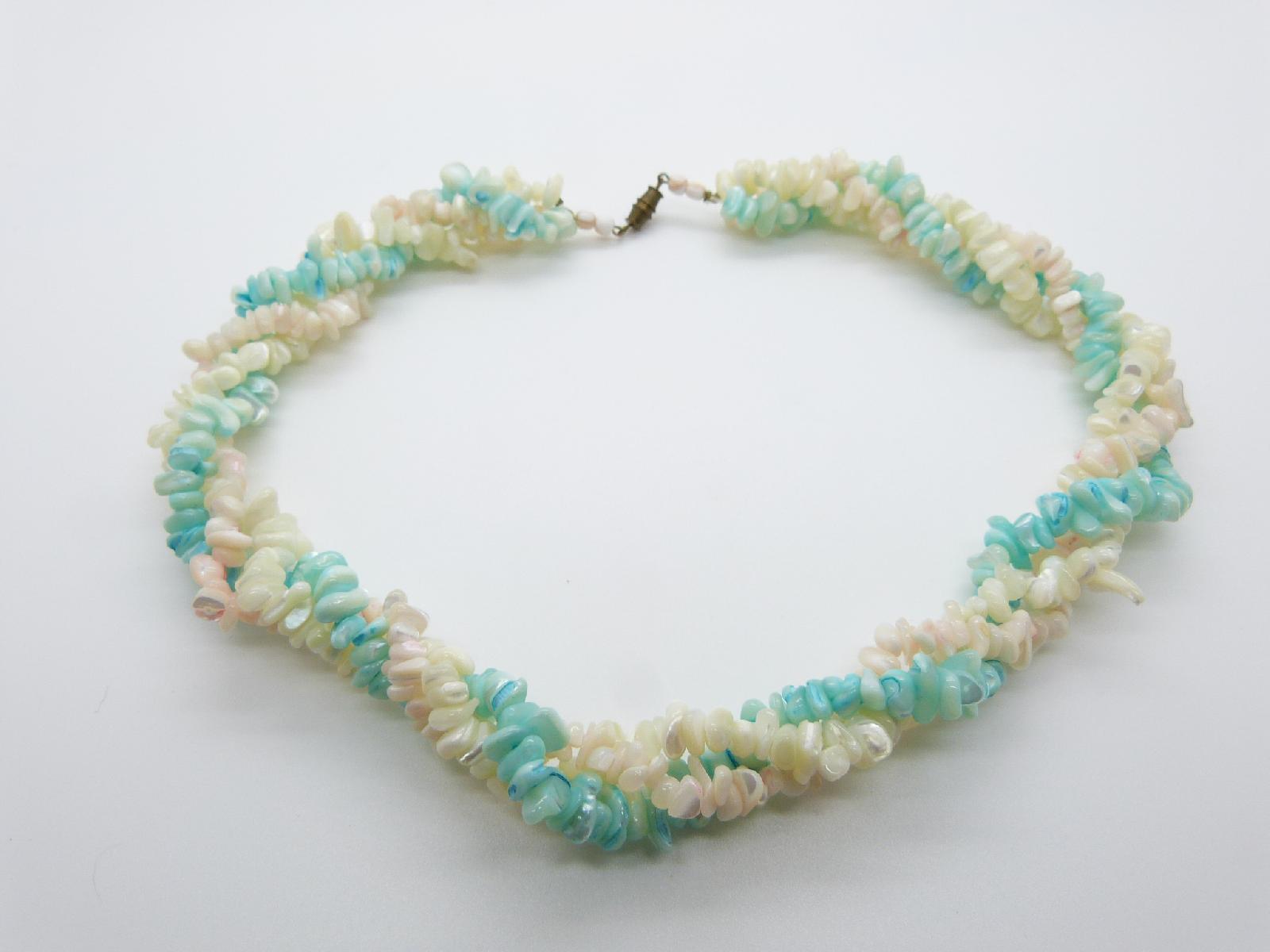 Vintage 50s Fab Three Row Twist Aqua and White Mother of Pearl Bead 55cms Necklace
