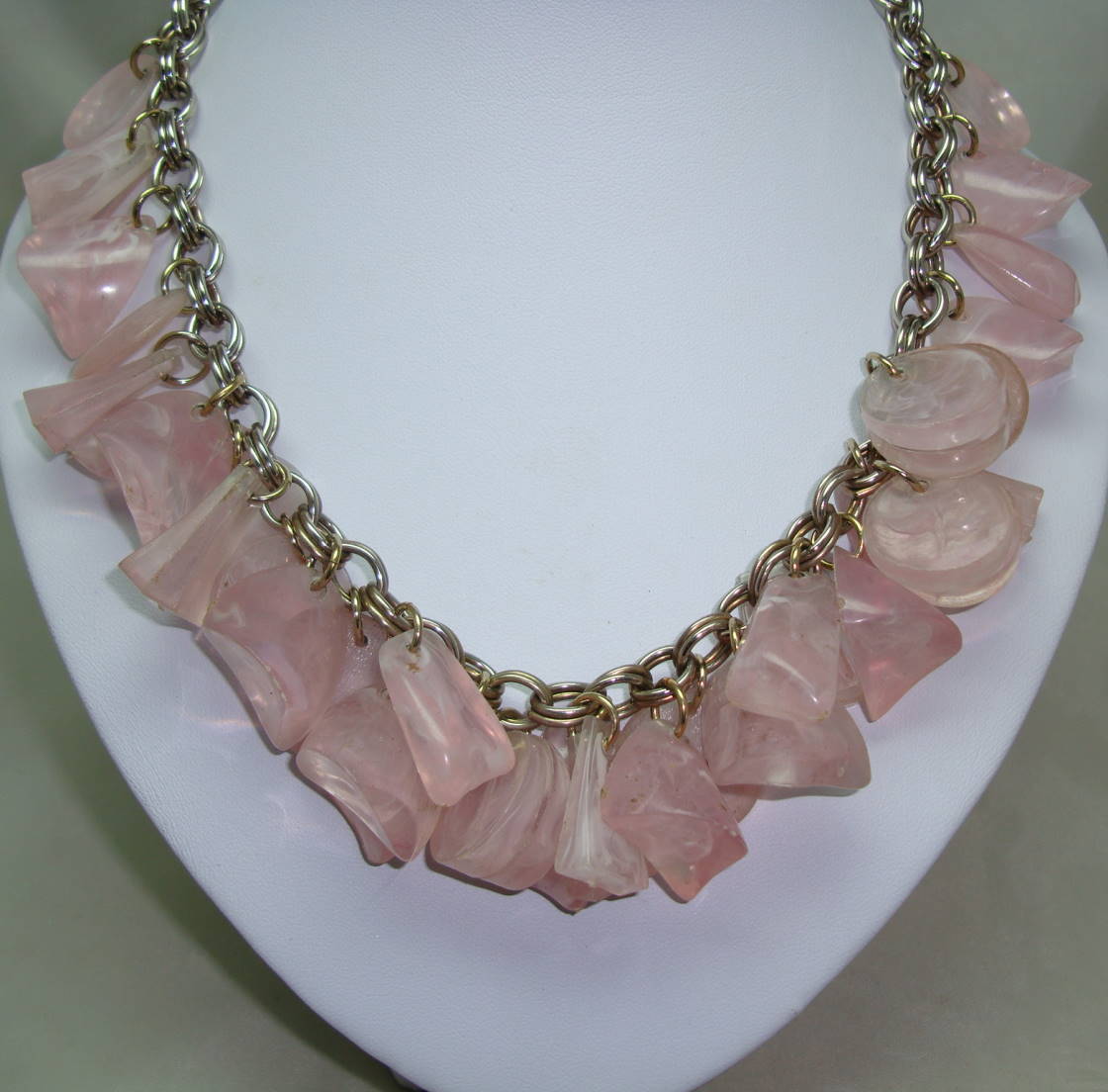 Vintage 50s Fabulous Chunky Pink Lucite Garland Drop Charm Bead Necklace