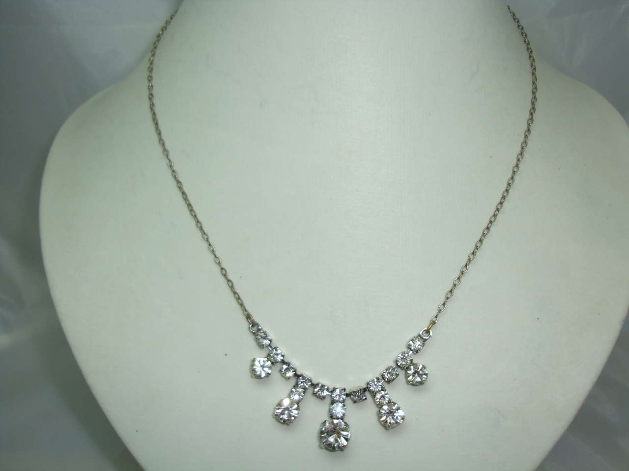 Vintage 50s Glamorous Diamante Paste Drop Necklace on Silver Chain