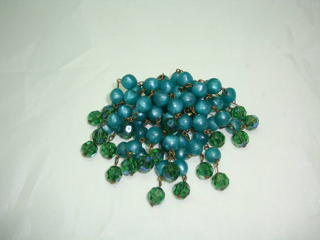 Vintage 50s Green Lucite Bead & AB Crystal Glass Drop Brooch
