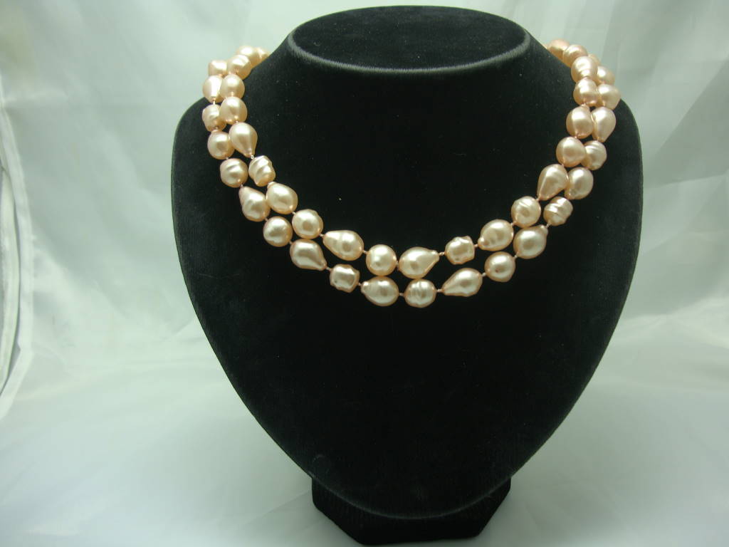 Vintage 50s Pink Baroque Faux Pearl Bead Necklace WOW