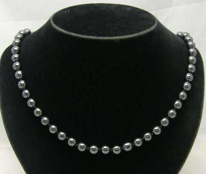 Vintage 50s Real Hematite Hand Knotted Bead Necklace