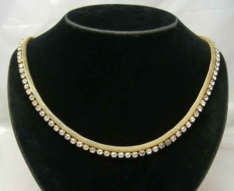 Vintage 50s Sparkling Diamante & Gold Mesh Necklace