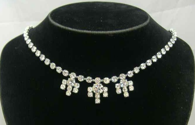 Vintage 50s Sparkling Diamante Flower Drop Necklace
