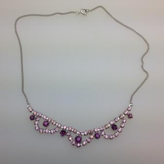 Vintage 50s Sparkling Two Tone Purple Diamante Cascade Silvertone Necklace 45cms