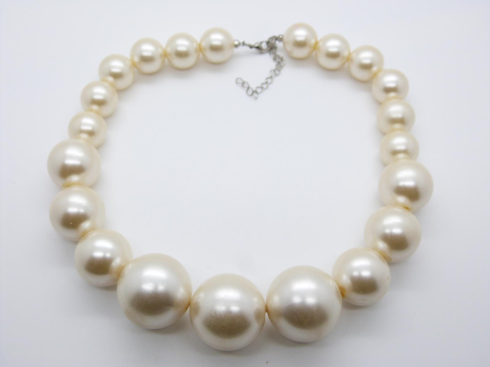 Fab vintage 50s STYLE chunky faux pearl bead statement necklace, looks super on, measures 51cms plus extender chain.  Excellent condition!