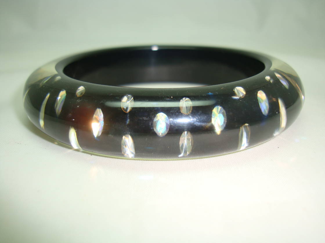 Vintage 50s Style Clear Lucite AB Diamante Sparkle Black Bangle