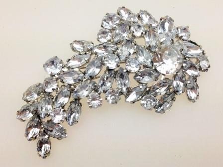 Vintage 50s Style Plastic Faceted Stone Silvertone Brooch Very Showy! 8cms