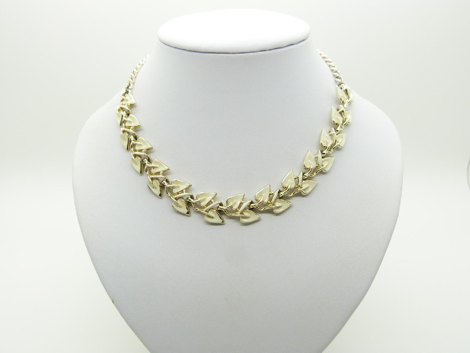 Vintage 50s Unsigned Jewelcraft Cream Enamel Floral Link Goldtone Necklace