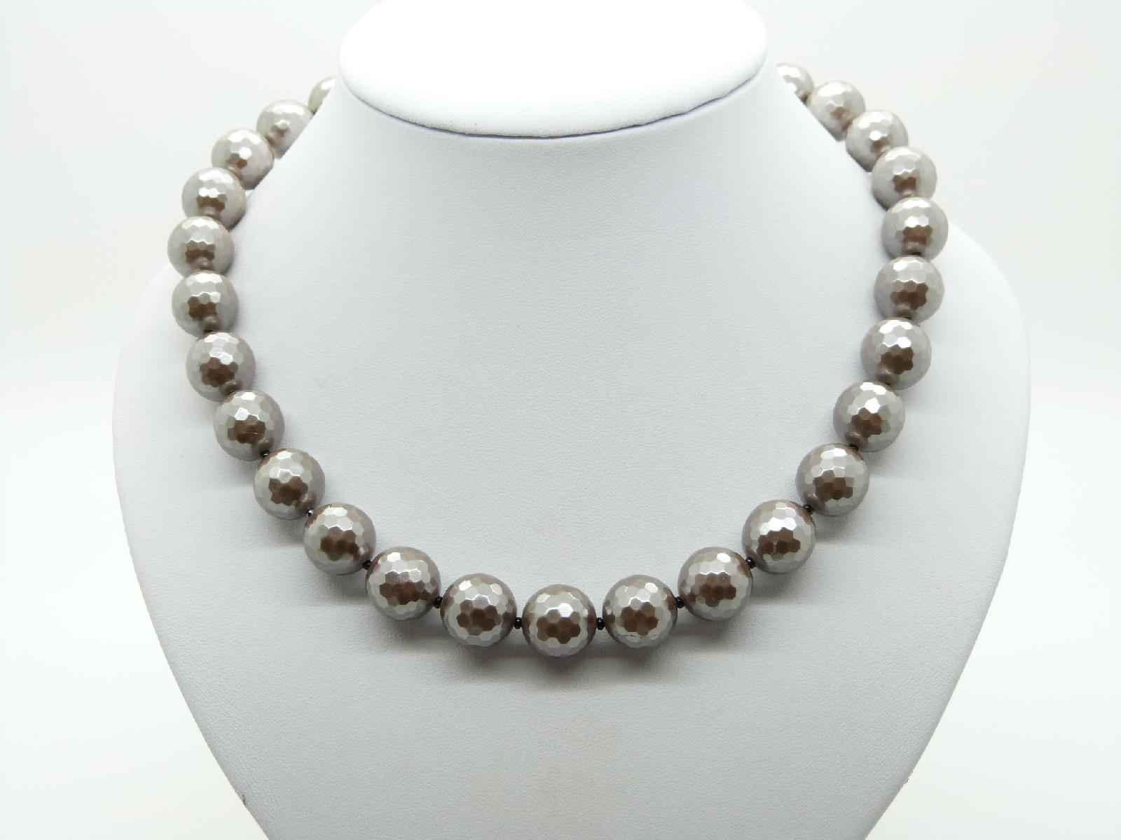 Vintage 50s Very Attractive Silver Grey Faceted Glass Bead Necklace Quality