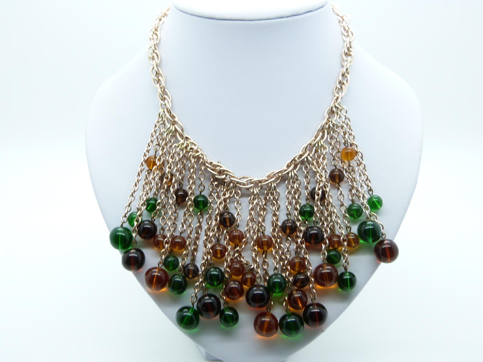 Stunning vintage 1960s green and citrine glass tassel drop goldtone chain necklace, excellent condition, looks amazing on, a real eye catcher.  Length 41cms, tassels measures 7cms in length, fastens with barrel screw fastener.  This really is a fabulous piece!