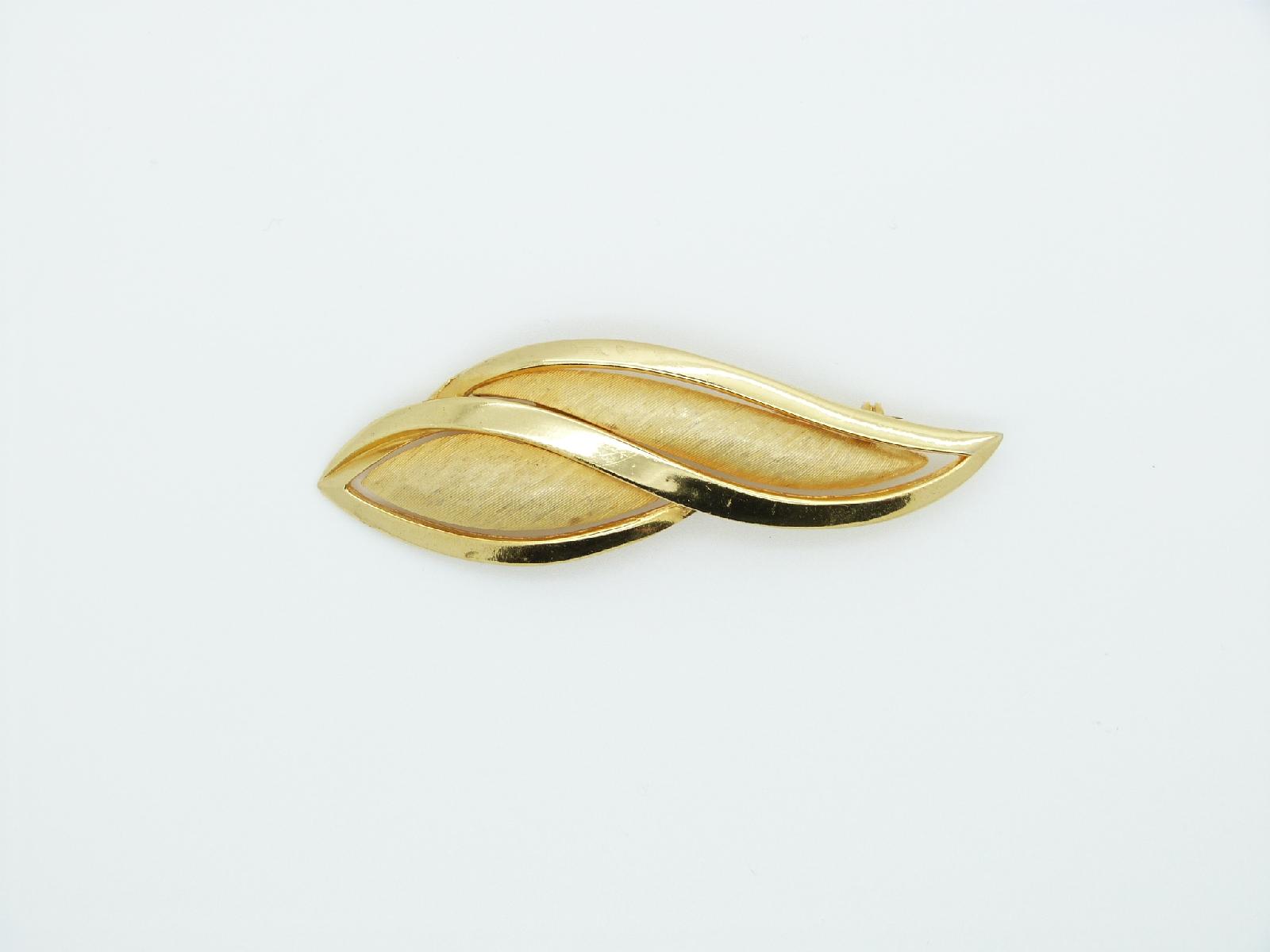 Vintage 1960s signed Sphinx (on back of brooch) quality swirl design textured goldtone brooch, lovely contrast between the highly polished goldtone and the textured finish, excellent condition, roll over clasp fastener, measures 9cms in length, looks really classy on.