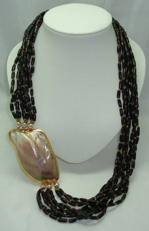 Vintage 70s 9 Row Brown Bead Necklace Huge MOP Side Feature Fabulous!