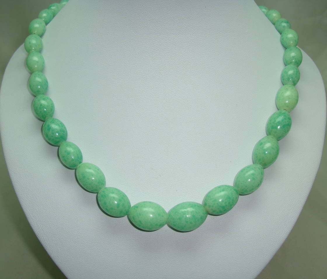 Vintage 70s Long Graduating Genuine Jadite Jade Bead Necklace Quality