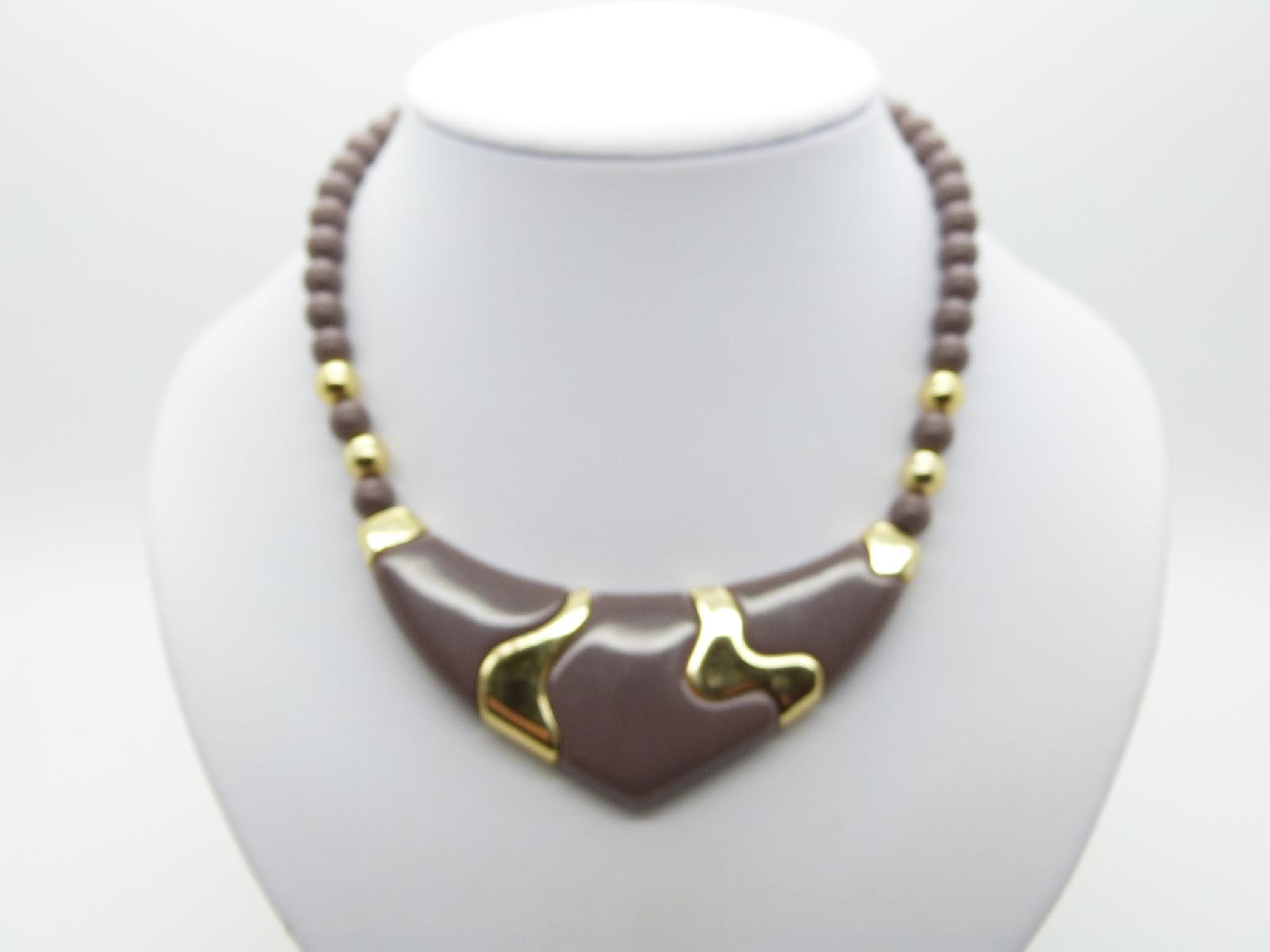 Vintage 70s Unique Brownish Purple and Gold Lucite V Shaped Bead Necklace