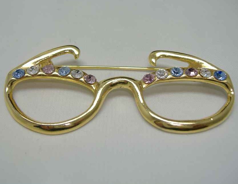 Vintage 80s Diamante Dame Edna Spectacles Brooch FUN!