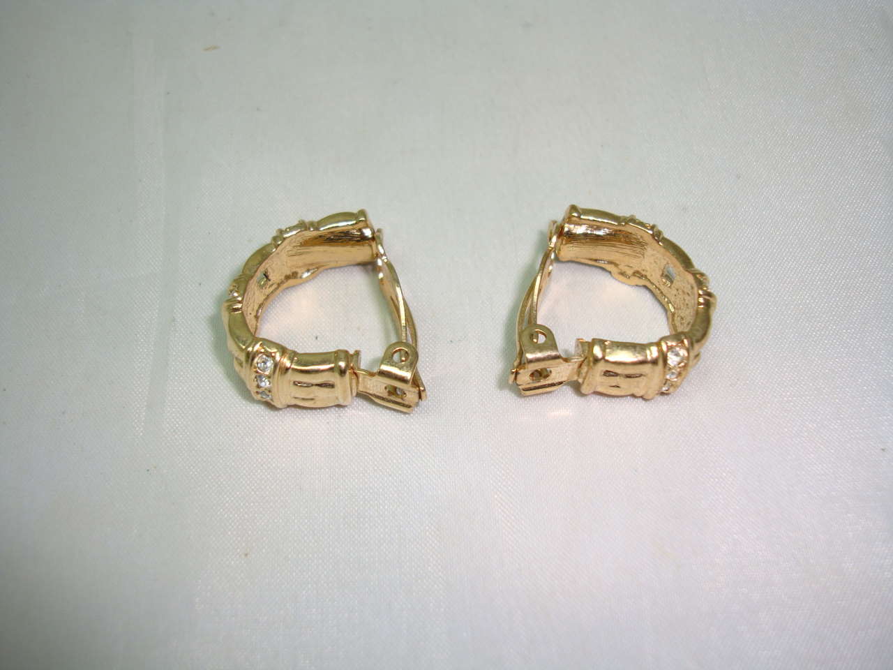 Vintage 80s Half Hoop Diamante Gold Chain Link Design Clip On Earrings